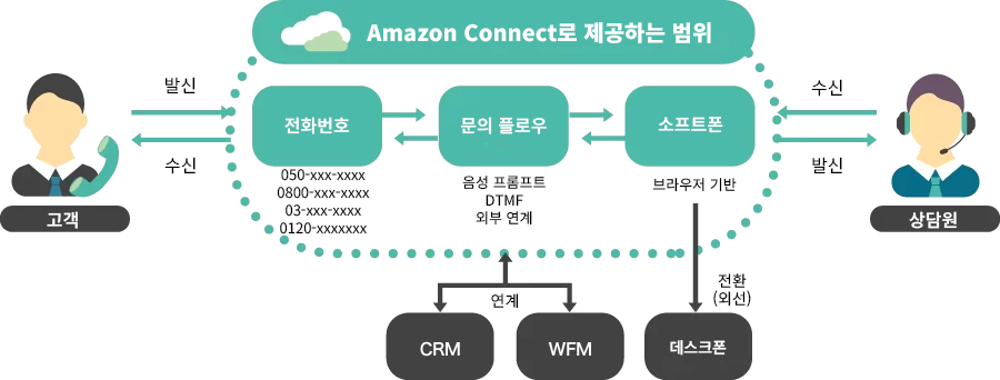- Amazon Connect로 장소에 구애받지 않고 전화 응대, 재택근무도 실현