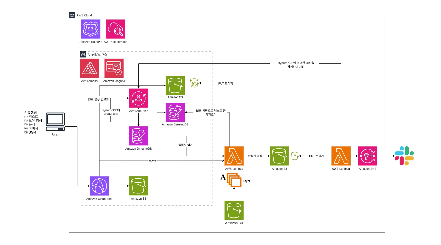 그중에서도 큰 성과는 AWS Lambda를 활용한 서버리스 세로형 동영상 자동 생성 기반입니다. 이 기반에서는 AWS Amplify로 웹 앱화한 도구를 통해 사내 사용자가 뉴스 동영상을 기반으로 간편하게 세로형 동영상을 생성할 수 있습니다.